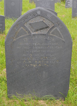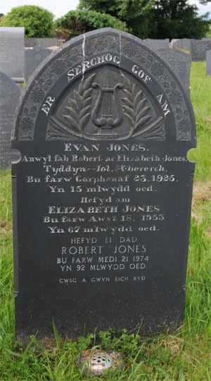 | 1620 | Robert | Evans | Methlan Rhoshirwaun | 13/06/1945 | 70 | R Wynne-Griffith Vicar |
