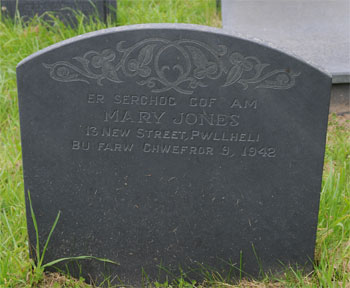| 1651 | Mary | Jones | 7 School Terrace Abererch | 04/02/1948 | 87 | R Wynne-Griffith Vicar | |