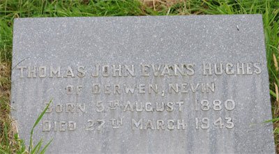 | 1594 | Thomas John Evans | Hughes | Derwen Nevin | 27/03/1943 | 63 | R Wynne-Griffith Vicar |