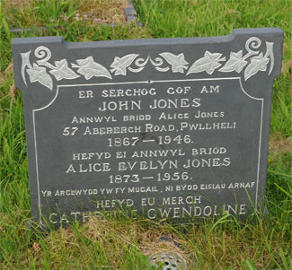 | 946 | Grace | Evans | Mynydd Mawr | 14/10/1902 | 76 | S F Davies Curate Llangybi | |