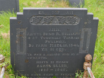 | 1638 | Agnes Ellen | Williams | 4 St Tudwal's Terrace Pwllheli | 30/12/1946 | 61 | R W-Griffith Vicar |