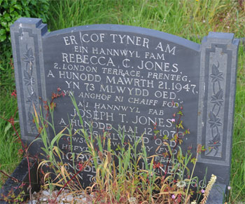 | 1642 | Rebecca C | Jones | 2 London Terrace Prenteg | 25/03/1947 | 72 | R Wynne-Griffith Vicar |