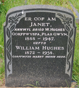 | 1648 | Janet | Hughes | Gorffwysfa Plasgwyn died C and A | 08/11/1947 | 59 | R Wynne-Griffith Vicar |