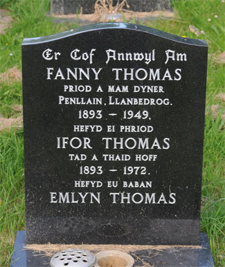 | 1667 | Fanny | Thomas | Penllain Llanbedrog | 17/09/1949 | 55 | R Wynne-Griffith Vicar |