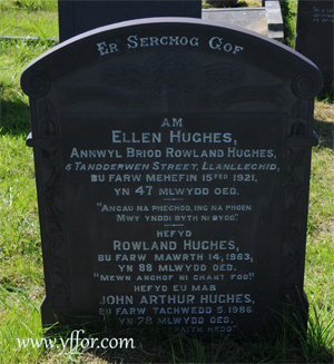 | 745 | 13/12/1978 | Rowland P | Hughes | 81 | 28 Maes Bleddyn Bethesda | I | 54 | Ashes | |