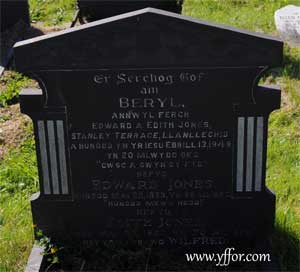 | 740 | 02/10/1978 | Ellis Llewelyn | Thomas | 76 | 8 Glanogwen Bethesda | I | 147 | Ashes | |