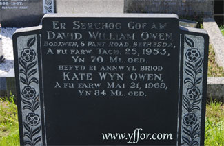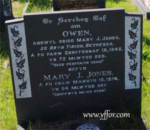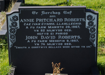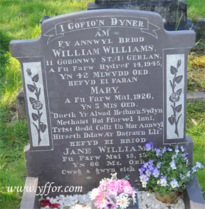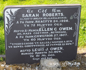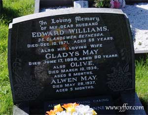 | 43 | 31/08/1961 | Mary | Williams | 81 | Fron Oleu Hendrepike Bethesda | H | 74 | |