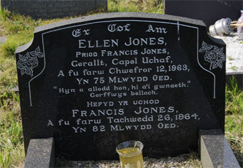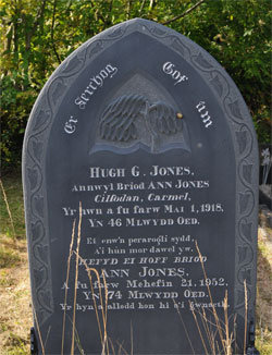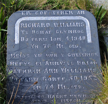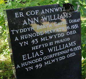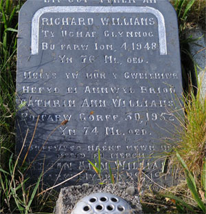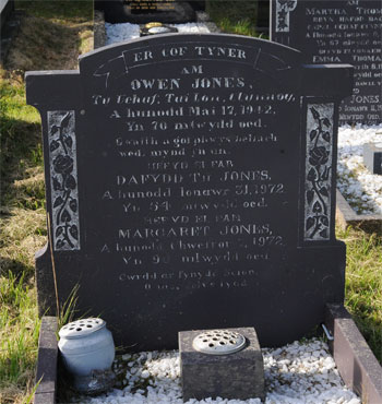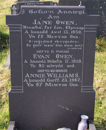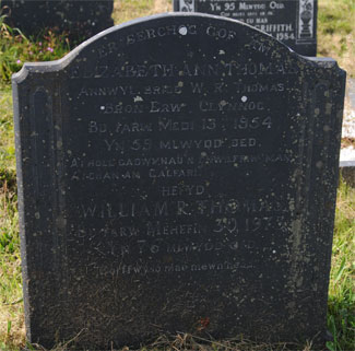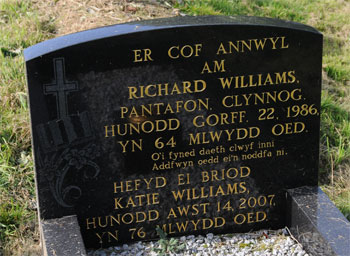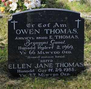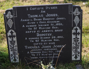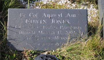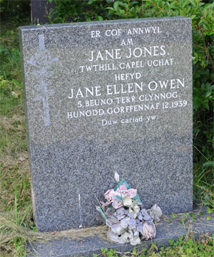 | 553 | 2002 | Edwyn | Jones | 5 Llwyn y Fuches Penygroes | | 17/03/2002 | Ashes with Grandparents Henry and Margt Wms |