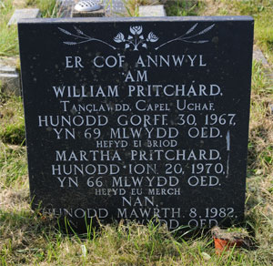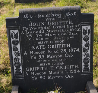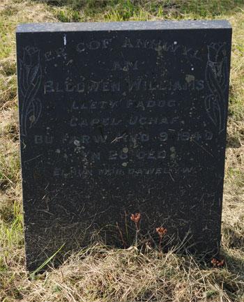 | 67 | 20/04/1866 | Mary | Griffith | Llwyngwanadl | 78 | 17/04/1866 | Wife of Robert Robert |