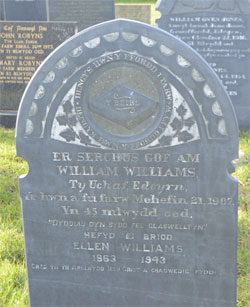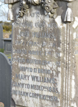 | 86 | John | Williams | Pen y gongl Edeyrn | Priod Ann Williams | 27/01/1879 | 82 |