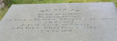 | 43 | Robert | Hughes | Hirdref | Priod Ann Hughes | 10/08/1868 | 93 |