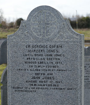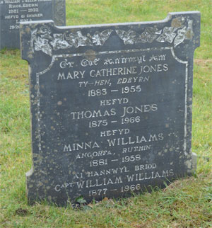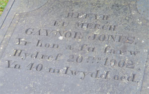 | 91A | Margery | Jones | Tynyfynwent | Priod William Jones | 26/09/1879 | 40 |