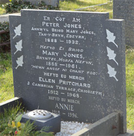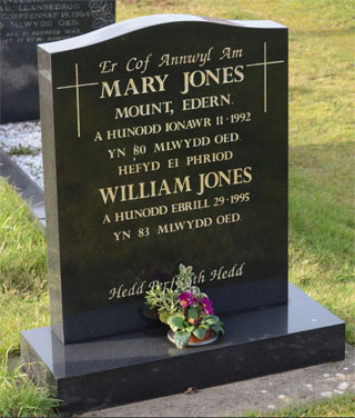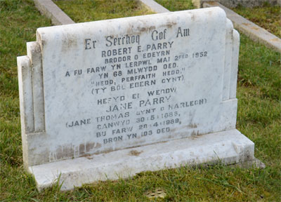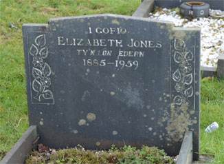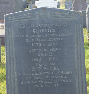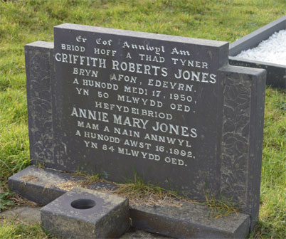 | 855 | Annie Mary | Jones | Bryn Afon Edeyrn | Gweddw Griffith Robert Jones | 16/08/1992 | 84 |