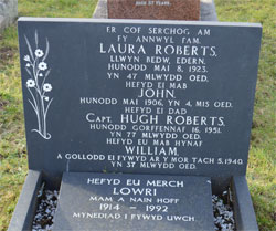 | 87 | Hugh | Roberts (Capt) | Pwll Clai Edern | Priod Anne Roberts | 10/02/1879 | 66 |