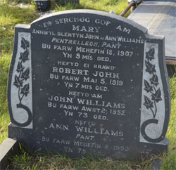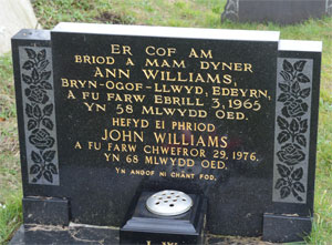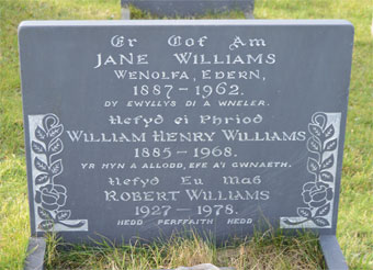 | 831 | Robert | Williams | Nythfa Edern | Gweddw Maggie E Williams | 1986 | 89 |