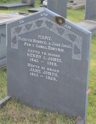 | 918 | Mary | Jones | Pen y Gongl Edeyrn | Merch Henry G a Jane Jones | dim dyddiad | |