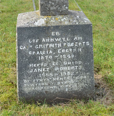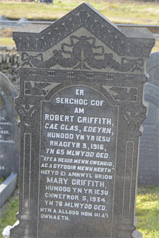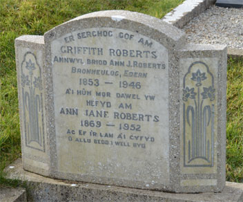 | 75 | Griffith | Roberts | Tynyfynwent Edeyrn | Gweddw Jane Roberts | 26/07/1875 | 80 |