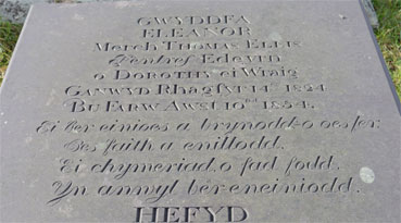 | 6 | Jane | Roberts | Tynyfynwent Edeyrn | Priod Griffith Roberts | 15/09/1854 | 55 |