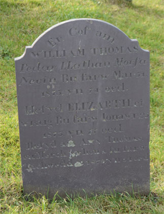 | 57 | Elizabeth | Thomas | Pedair Llathan Morfa Nevin | Priod William Thomas | 25/01/1873 | 75 |