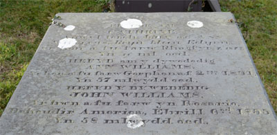 | 12 | Evan | Roberts | Pen y Bryn | Priod Catherine Roberts | 13/02/1857 | 87 |