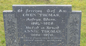 | 875 | Hugh Thomas | Williams | Llwyn Helig Edern | Priod Jennie Williams | 1996 | 81 |