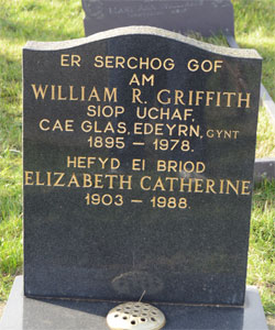 | 839 | Elizabeth Catherine | Griffith | Siop Uchaf (Cae Glas gynt) | Gweddw William R Griffith | 1988 | 85 |