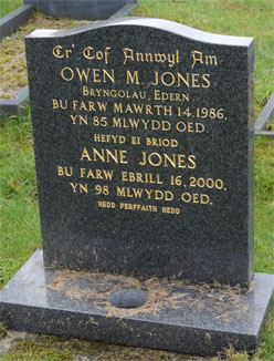 | 882 | Anne | Jones | Bryngolau Edern | Gweddw Owen M Jones | 16/04/2000 | 98 |