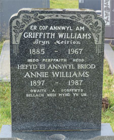 | 833 | Annie | Williams | Bryn Meirion | Gweddw Griffith Williams | 1987 | 90 |