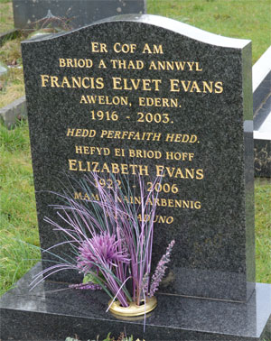 | 886 | Francis Elvet | Evans | Awelon Edern | Priod Elizabeth Evans | 2003 | 87 |
